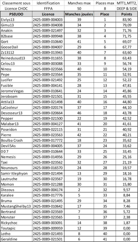 FFPA Classement S17 2025-2026 des joueurs qualifiables au CFIPA 2026 Classement S16 2024-2025 des joueurs qualifiables au CFIPA 2026
